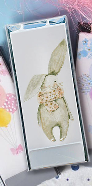 Candela artigianale piatta Coniglietto con sciarpa rosa, dipinta a mano con un tenero coniglietto sulla superficie: un’idea regalo perfetta per una nascita, un battesimo o un compleanno. Splendida anche come complemento d’arredo.