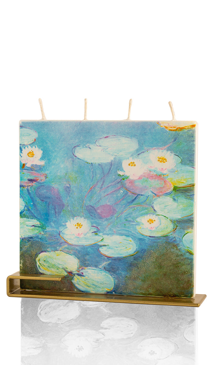 - La confezione include una candela piatta fatta a mano e un supporto in acciaio.